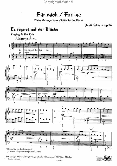 Takacs Fur Mich (For Me) Op.76 for Piano Solo