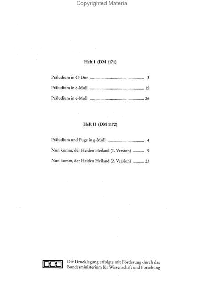 Zum ersten Mal ist das zweifelhafte Praludium G-Dur in diese neue Gesamtausgabe, die alle erreichbaren Quellen verarbeitet, aufgenommen worden. Auch werden zwei Versionen des Choralvorspiels "Nun komm, der Heiden Heiland" angebot.