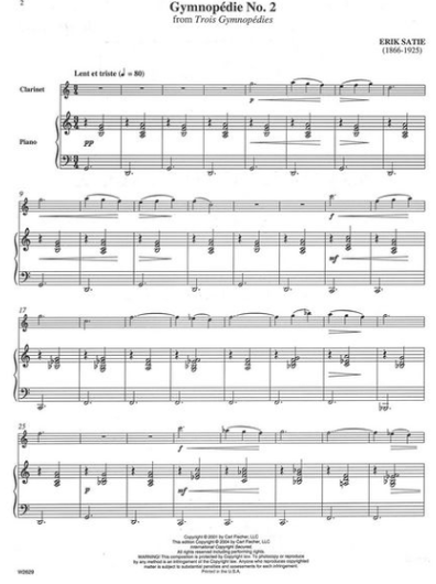 Satie Gymnopedie No.2 From Trois Gymnopedies for Clarinet and Piano