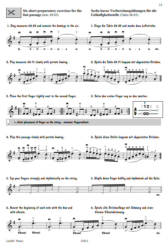 This three-volume series is a manual, in English and German, for intermediate level violin teaching and is designed to be used as: a useful supplement for Suzuki students and teachers (Suzuki Book 4) a helpful aid for students and teachers using non-Suzuki methods, and a refresher course for players with previous experience. The main emphasis in Volume 1 of the series is to help the student master individual movements from violin concertos by J.S. Bach, Vivaldi and Seitz.