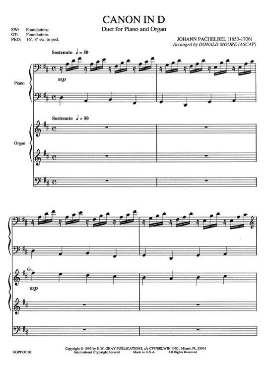 Pachelbel Canon in D Major for Organ and Piano