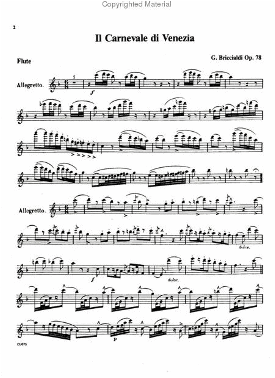 줄리오 브리치알디 의 베니스의 카니발 작품 78 플루트 독주 및 피아노 반주