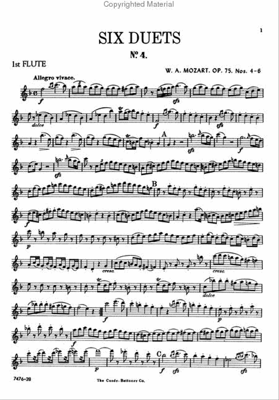 Mozart Six Duets for Two Flutes Op.75 Book.2 Nos 4-6