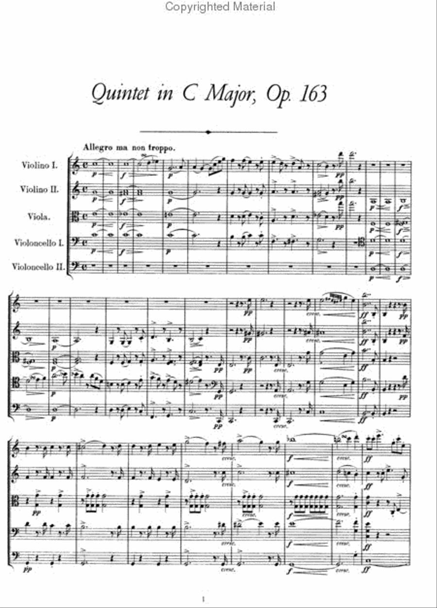 the Quintet in C Major for 2 Violins, Viola and 2 Violoncellos;