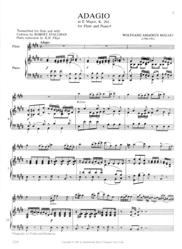Mozart Adagio in E major, K.261 for Flute and Piano