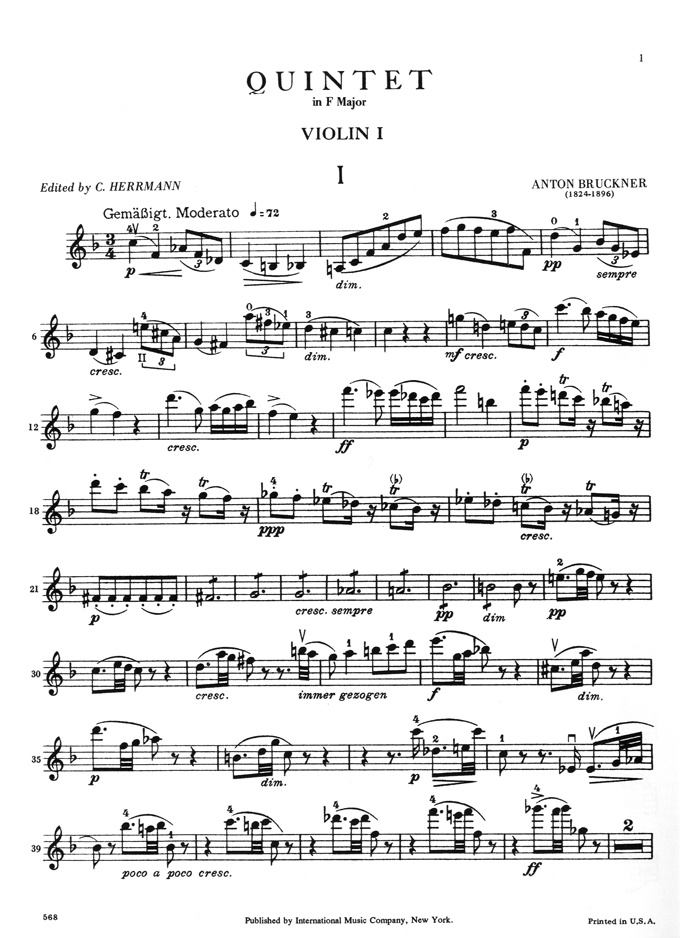 Bruckner Quintet in F major (with 2 Violas) for for 2 Violins, 2 Violas and Cello