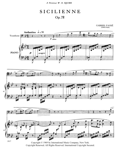 Faure Sicilienne, Op.78 for Trombone and Piano