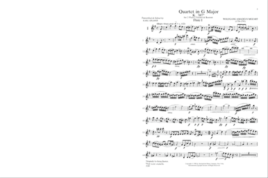 Mozart Quartet in G major, K.387 for 2 Flutes, Clarinet & Bassoon (Kraber)