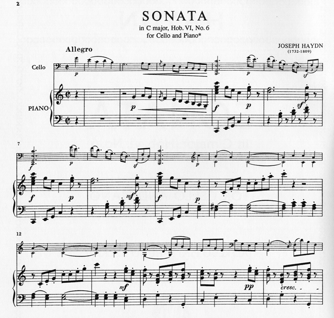 Haydn Sonata in C Major (Hob.VI:6) for Cello and Piano