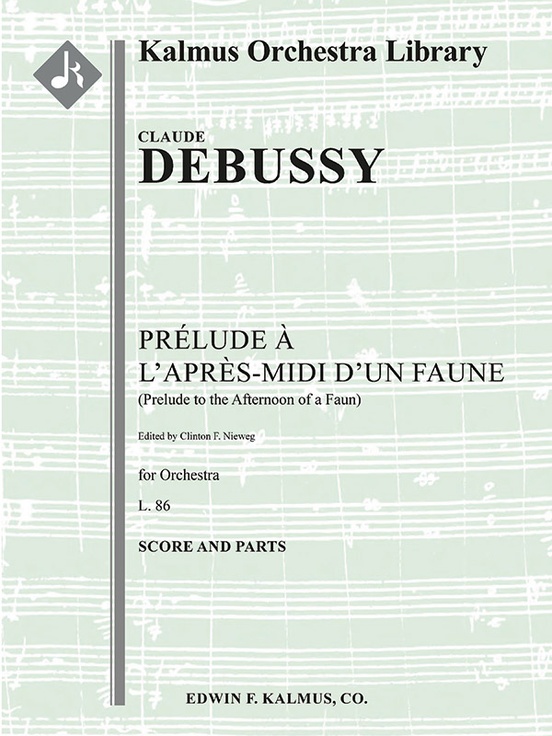 Prélude à l’après-midi d’un faune (Prelude to the Afternoon of a Faun, L. 86) was composed by Claude Debussy (1862-1918) in 1894. A symphonic poem based on Stéphane Mallarmé’s poem L’après-midi d’un faune, the work is simultaneously among Debussy’s most famous, a masterpiece of Impressionist composition, and a turning point in the history of Western music. Mallarmé’s poem depicts a faun playing his panpipes who fails in his amorous pursuit of some passing nymphs, then lays down to sleep after the effort to maybe recapture it all in a dream. While not a tone poem in the strict sense, it does evoke the erotic feeling of the text. It Includes one of the most well-known orchestral flute solos in the repertoire, and the music was set to a short and highly controversial ballet in 1912 by famed dancer Vaslav Nijinsky. Instrumentation: 3.2+EH.2.2: 4.0.0.0: Perc(1): Hp(2): Str (9-8-7-6-5 in set). Edited by Clinton Nieweg.
