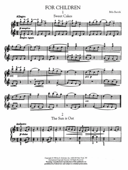 "어린이를 위한"(85개 짧은 곡), "소나티나", "피아노 1학기", "다섯 개의 작은 이야기", "세 개의 민요" 등 바르톡의 오리지널 작품을 모은 획기적인 컬렉션으로, 난이도 순으로 정리되어 있으며 젊은 피아니스트에게 완벽한 레퍼토리입니다.