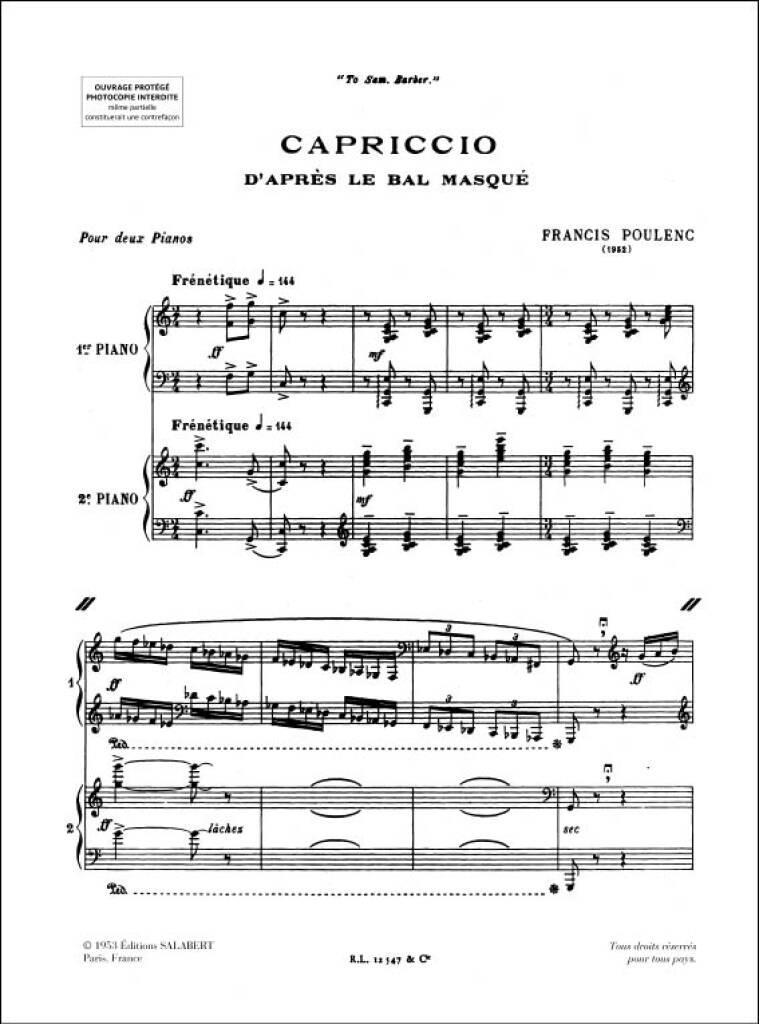 Poulenc Capriccio D`Apres le bal Masque for 2 Pianos 4 Hands