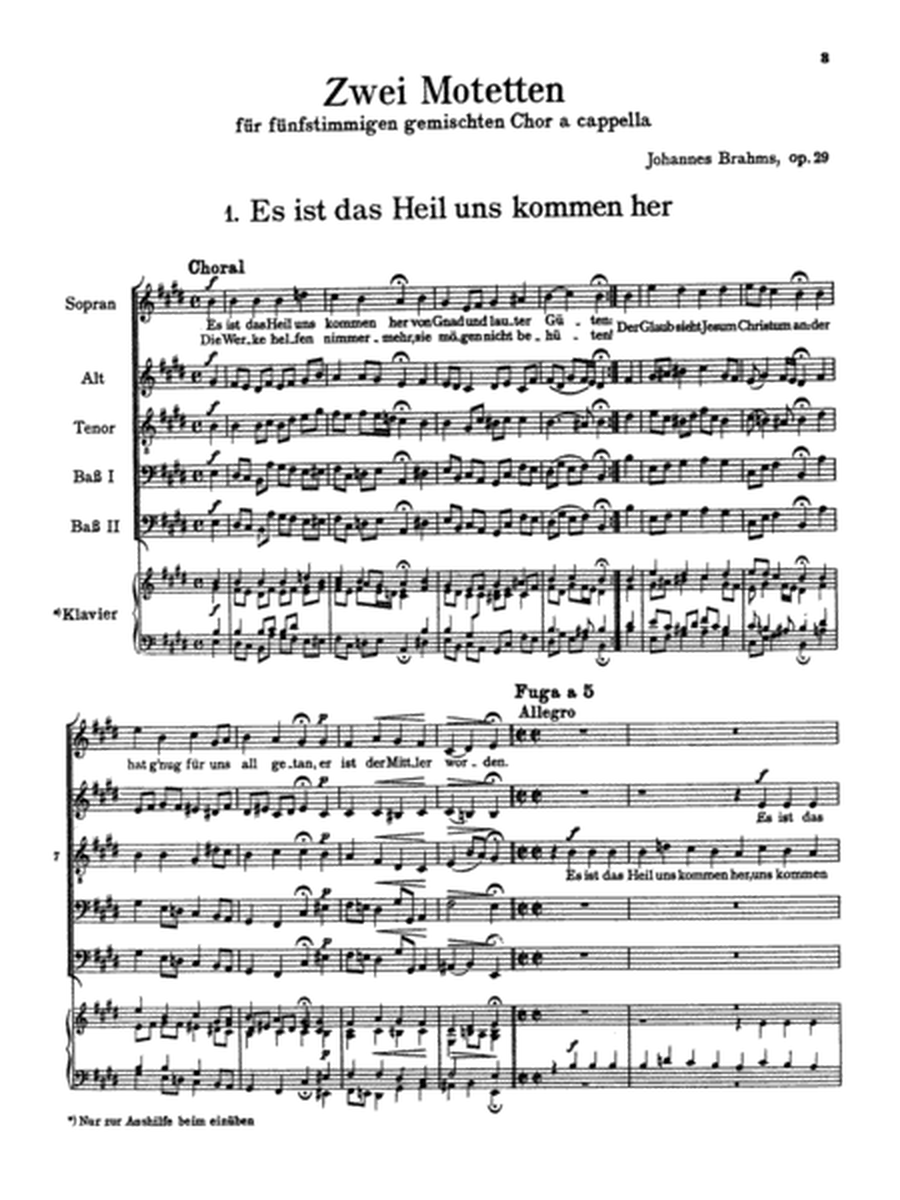Brahms 2 Motets Op.29 Es ist das Heil and Schaffe in mir - SATBB