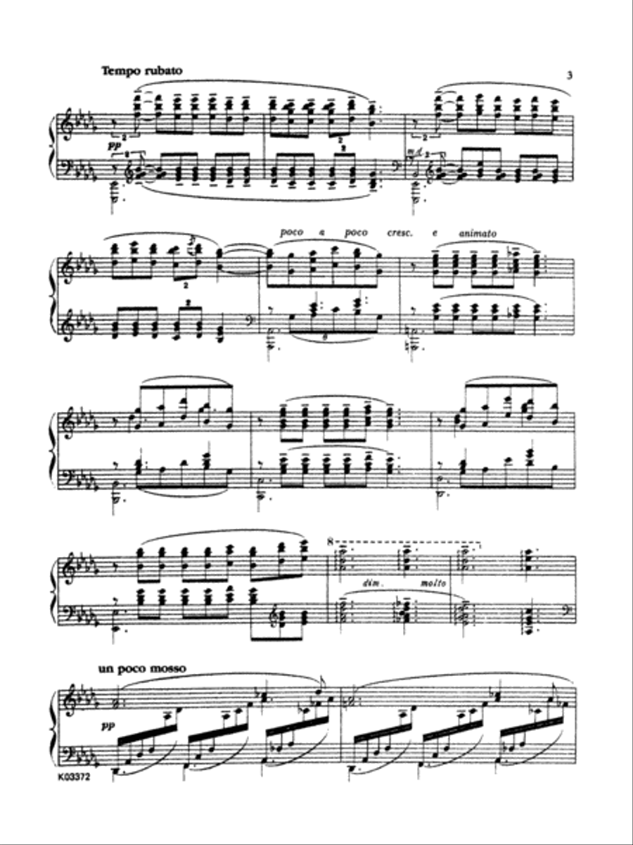 드뷔시의 가장 인기 있는 피아노 작품 중 하나를 편집하지 않고 단순화하지 않은 오리지널 버전입니다. 베르가마스크 모음곡 중 이 천상의 유려한 부분은 온음계로 이루어져 있으며, D♭장조의 전통적인 화성적 어휘를 보여줍니다. 제목인 '달빛(Clair de lune)'은 폴 베를렌의 동명시와 관련이 있으며, 달빛 아래 오래전에 죽은 무용수들의 환영을 묘사합니다. 이 음악은 명료함과 선명함을 유지하면서도 초월적이고 투명하며 불가해한 경험을 전달합니다. 중급 피아니스트로서 성장하는 이에게 완벽한 작품입니다.