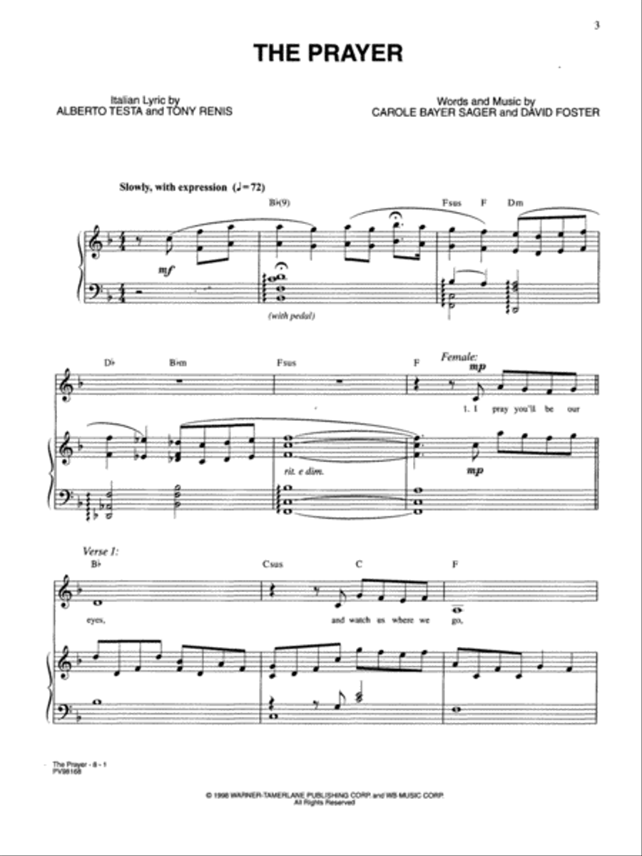 The Prayer (기도) for Vocal Duet by Celine Dion and Andrea Bocelli