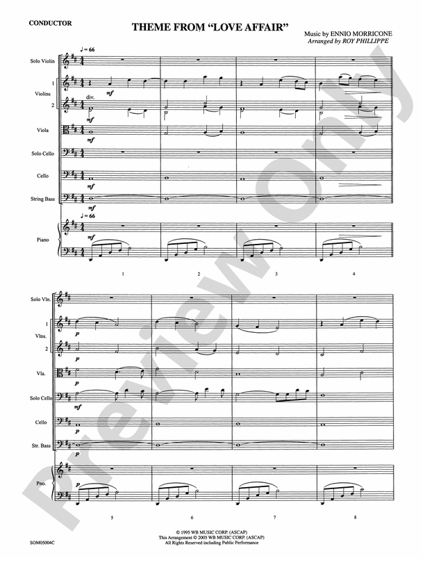 The charming Ennio Morricone ballad, Theme from Love Affair has been solidly scored for your concert string orchestra. Lush with rich harmonies, this is a delightful choice for any concert program. (7:30)