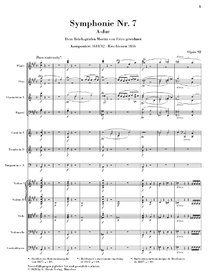 The premiere of this work in December 1813 ranks among the greatest successes Beethoven ever celebrated in public as a composer. One reviewer wrote at the time that in its themes the new symphony was “so favourable and easily comprehensible that every music lover falls for the powerful allure of its beauty”. The incisiveness of the themes is fundamentally related to the basic ostinato rhythms, which help shape each movement’s distinctive character. Richard Wagner even called the composition, with its ecstatic finale, an “apotheosis of the dance”. Based on the musical text of the Beethoven Complete Edition and furnished with a new preface, this recently prepared edition reflects the latest in Beethoven scholarship. Now, in this study edition, it is available to everyone at a reasonable price and in a handy format.