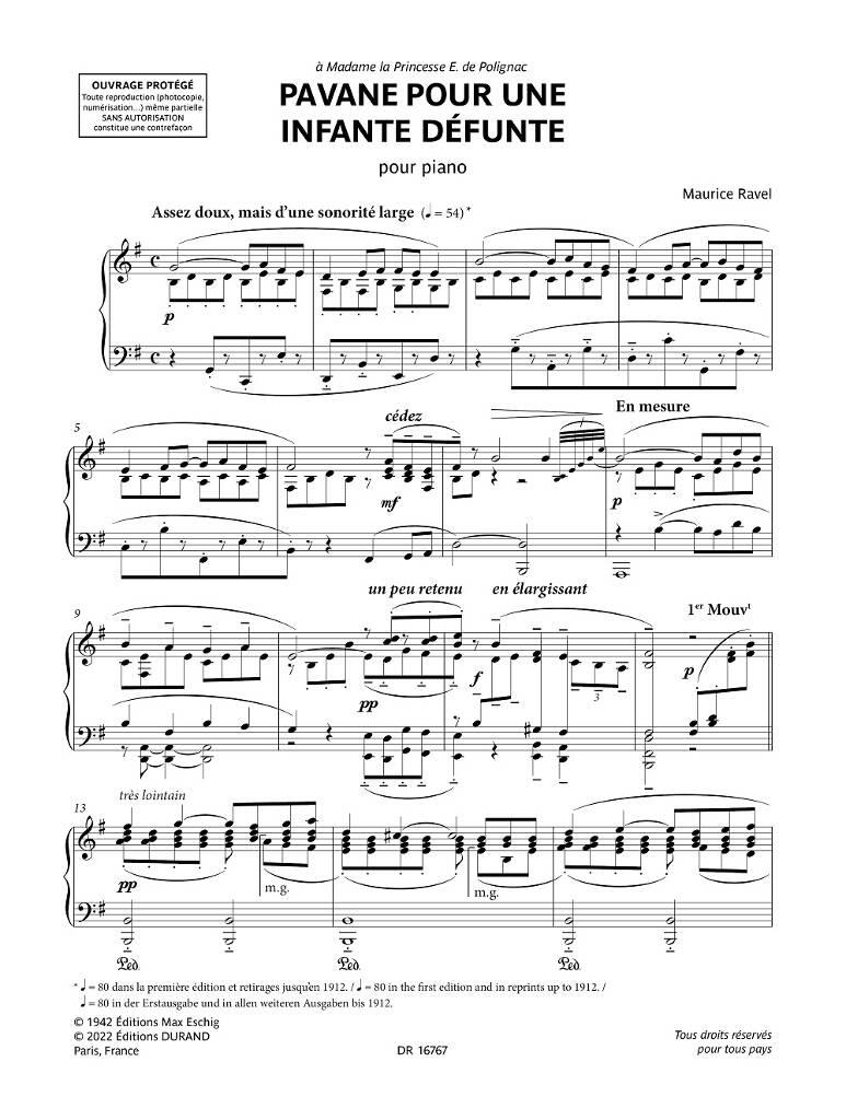Ravel Pavane Pour Une Infante Defunte for Piano Solo (Musique francaise)