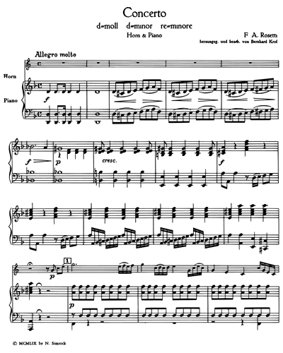 Rosetti Concerto in D minor for Horn and Piano