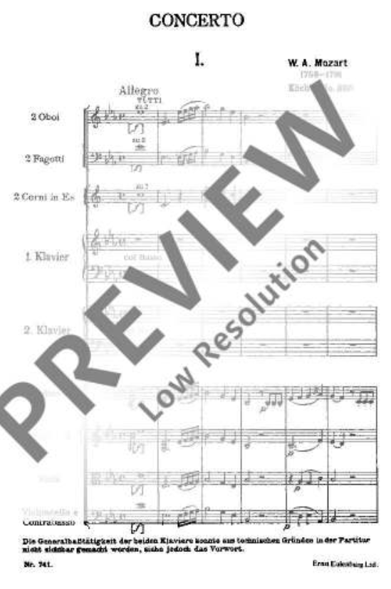 Mozart Concerto in Eb major K.365 for 2 Pianos and Orchestra (Miniature Score)