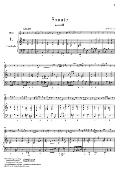 ... Here they are presented in an Urtext edition, as faithful as possible to the sources, and without added dynamics, articulation and ornamentation. The realisation of the thoroughbass in the keyboard part is clear and not too thick in texture; the volume comes with two copies of the flute/bass part (with figured bass) which is convenient for performance.