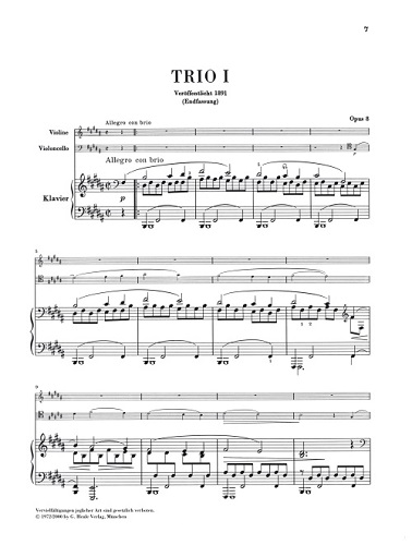 Piano trios belong among the great genres of Classical chamber music, and Brahms , too, turned his attention to this genre early on. He wrote his opus 8 in fall and winter 1853/54, thus at the age of 20. The two other piano trios were created 28 years later, namely op. 87 in C major, and 32 years later, op. 101 in c minor. Brahms was working on another Trio, in E flat major, at the same time that he was working on the C major Trio; however, it seems to have been destroyed. He returned to his first piano trio in 1889 and revised it so thoroughly that he wrote to Clara Schumann: “I have re-written my B major trio.” The Henle Urtext edition reproduces the second version of the Trio op. 8 (published in 1891) first, then follows this up with a reprint of the first version in its Appendix.