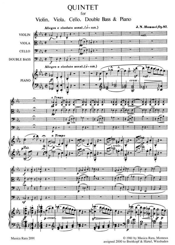 Hummel Piano Quintet in Eb minor Op.87