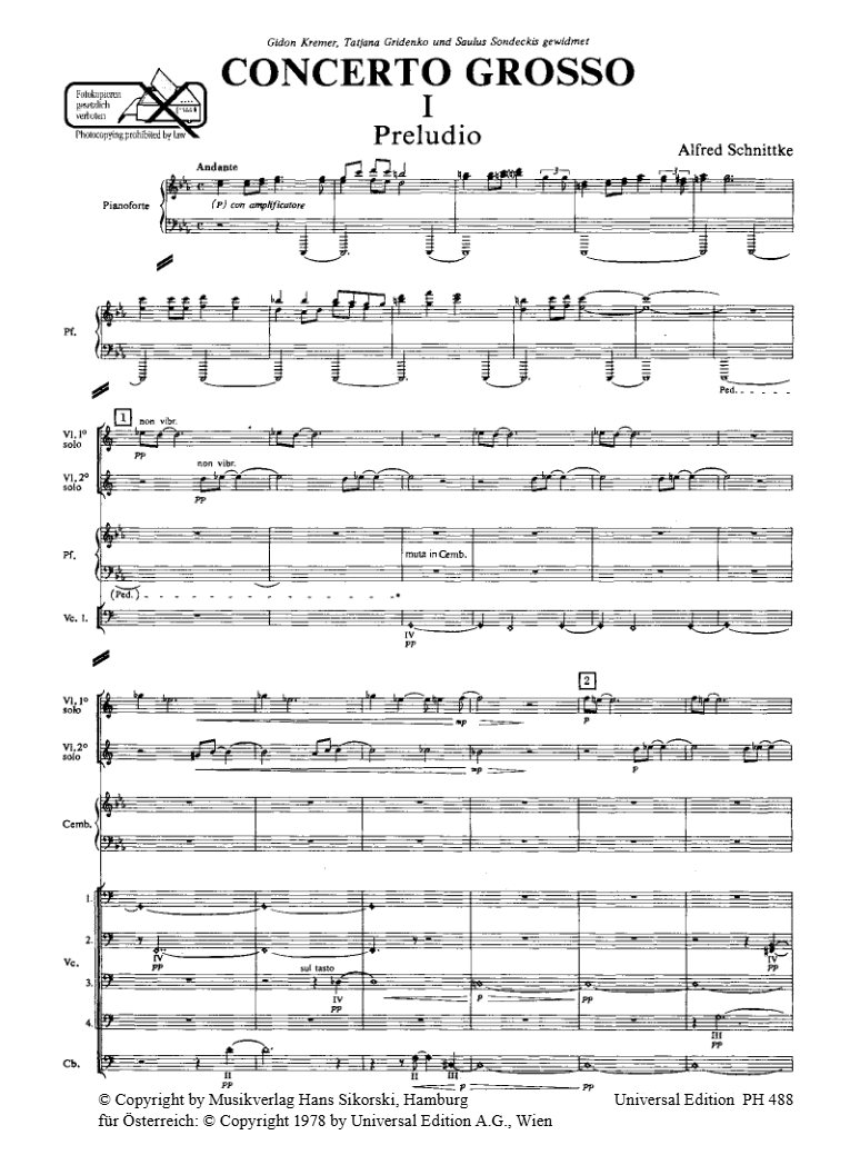 Schnittke Concerto Grosso No.1 for 2 Violins, Harpsichord (also piano) & String Orchestra (Miniature Score)