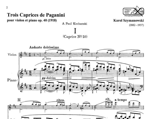 Szymanowski 3 Paganini Caprices Op.40 for Violin and Piano