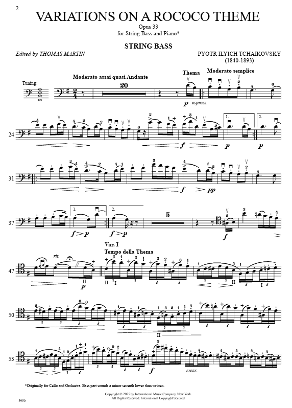 Tchaikovsky Variations on a Rococo Theme Op.33 for String Bass and Piano
