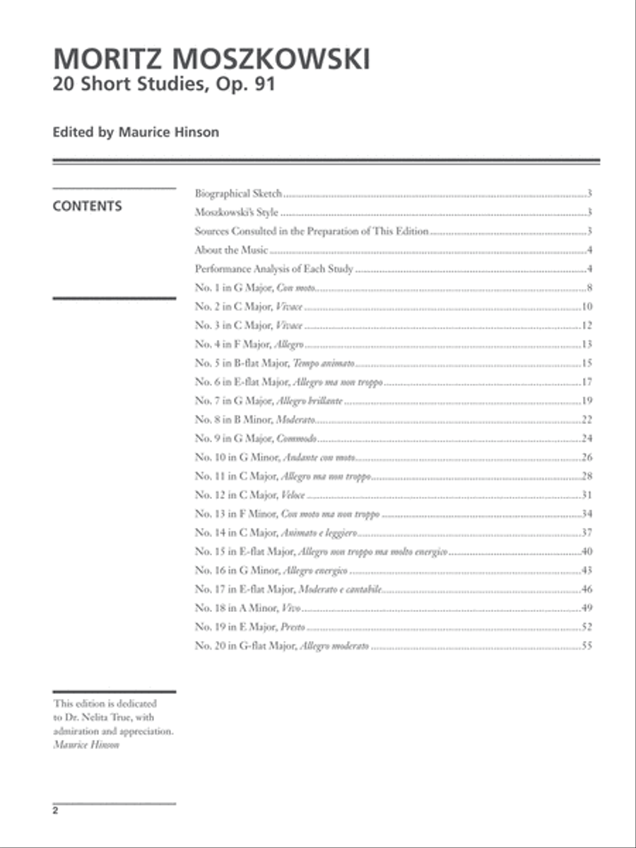 This Masterwork collection, edited by Maurice Hinson, contains performance analysis for each of the 20 studies. Biographical and historical information are also included