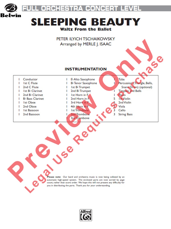 Tchaikovsky Sleeping Beauty (Waltz from the Ballet) for Full Orchestra (Score and Parts)