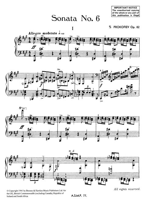 Prokofiev Piano Sonata No.6 in A major Op.82 for Piano Solo