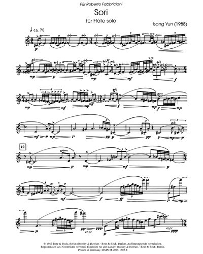 [특가상품] Yun, I (윤이상) Sori(1988) for Flute Solo