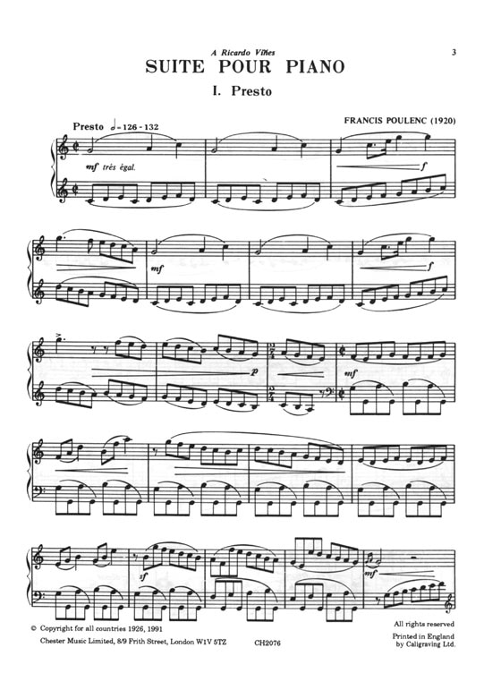 Poulenc Suite for Piano Solo