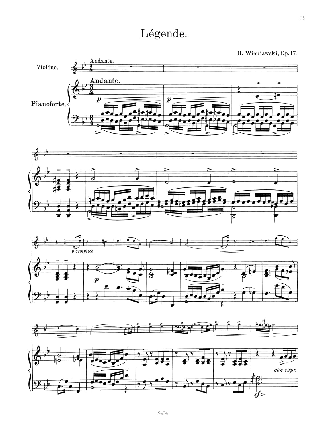 3. Wienawski : Legend op.17