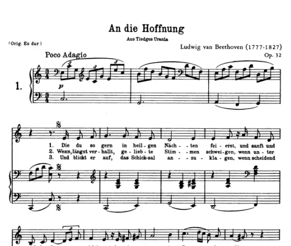 An die Hoffnung;Marmotte;Freudvoll und leidvoll;Der treue Johnie;An die ferne Geliebte (Liederkreis);Wonne der Wehmut;Zartliche Liebe (Ich liebe dich);Mignon;Der Kuss;Der Liebende;Lied aus der Ferne;Opferlied;Vom Tode;Sehnsucht;Das Blumchen Wunderhold; Mit einem gemalten Band;Die Trommel geruhret;Die Ehre Gottes aus der Natur;Gottes Macht und Vorsehung;Busslied;Mailied;Neue Liebe, neues Leben;Der Wachtelschlag;La Partenza (Der Abschied);Die Liebe des Nachsten;Bitten;Adelaide;In questa tomba oscura; Andenken;Abendlied;
