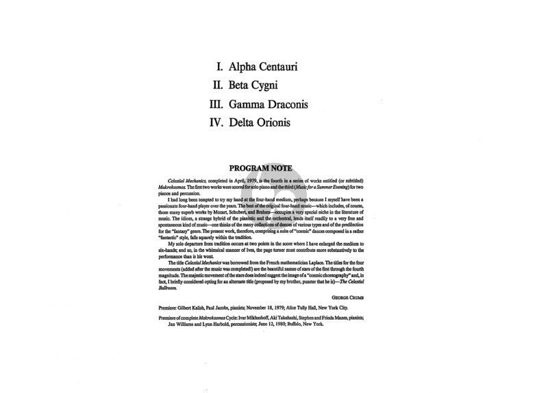 Crumb Celestial Mechanics (Makrokosmos IV) for Piano Duets