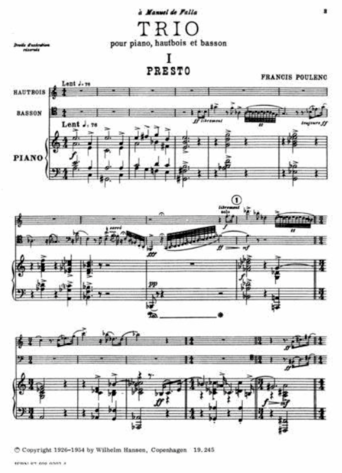 Poulenc Trio for Piano, Oboe and Bassoon