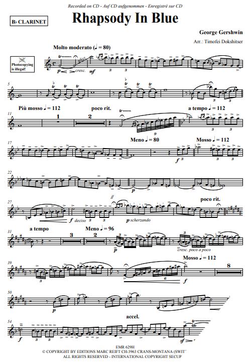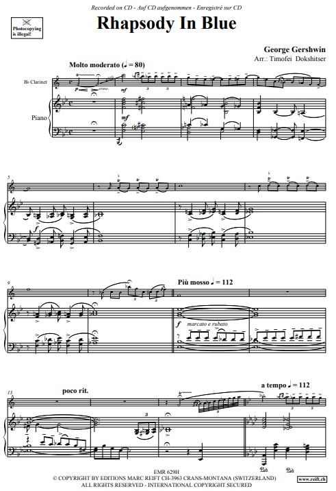 Gershwin Rhapsody in Blue for Bb Clarinet and Piano