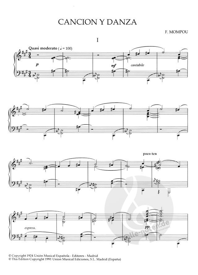 Mompou Cancion Y Danza 1, 2, 3 And 4 for Piano Solo