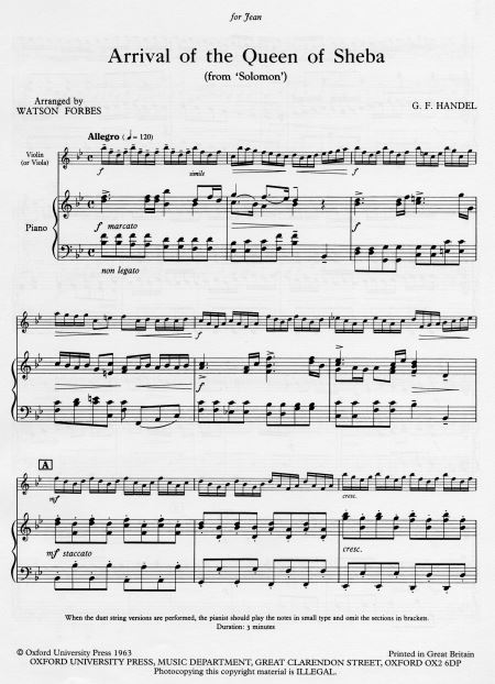 [특가상품] Handel Arrival of the Queen of Sheba for Violin (Viola) and Piano