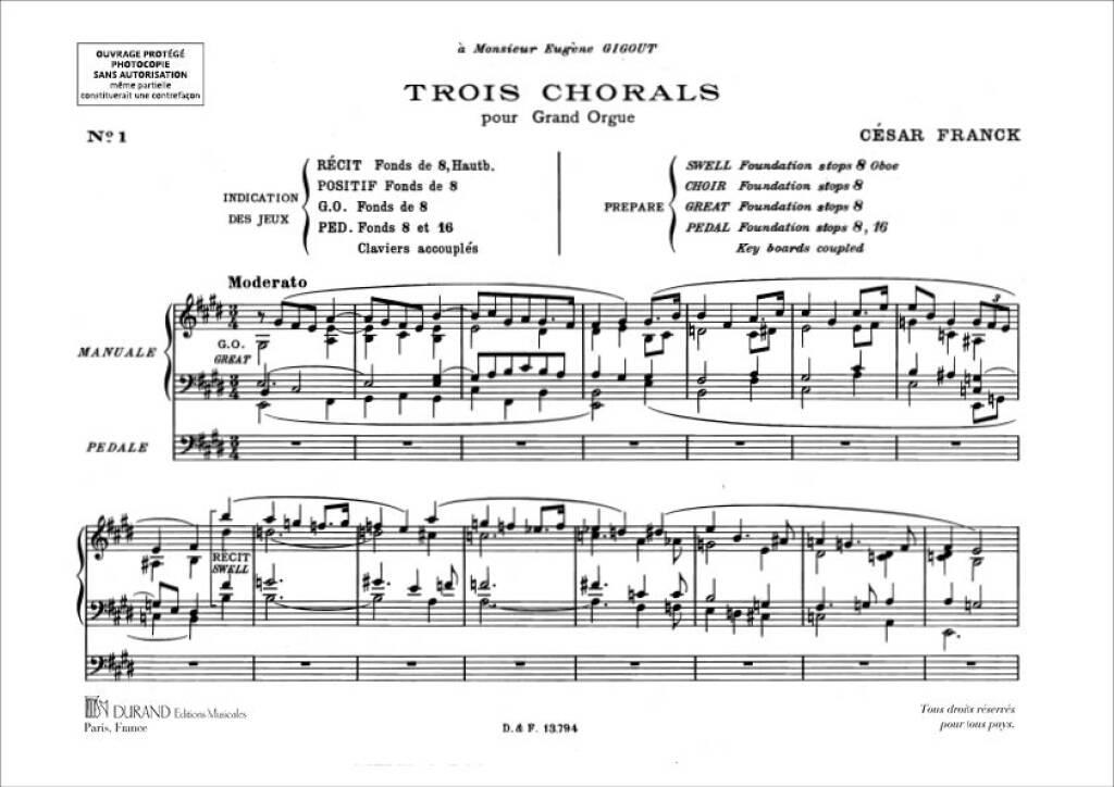 세자르 프랑크 의 오르간 작품집 4권 3개의 코랄 포함, 원전판 뒤랑판