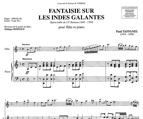 Taffanel Fantaisie sur les Indes Galantes for Flute and Piano