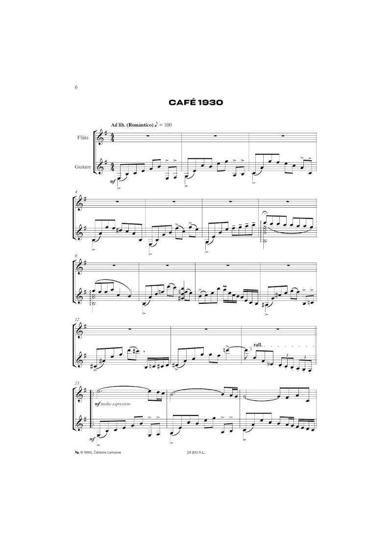 Piazzolla Histoire Du Tango for Flute and Guitar