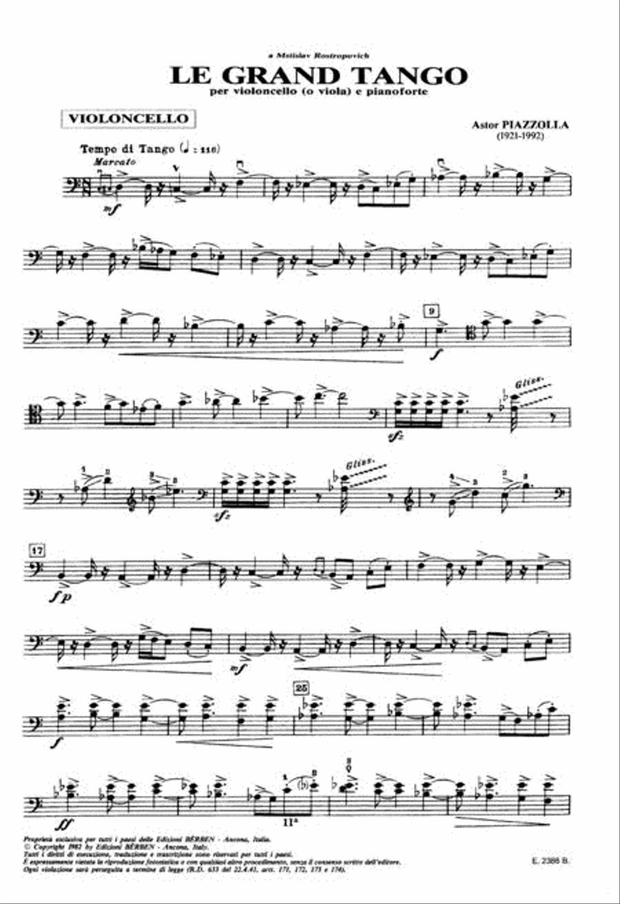 피아졸라의 재미있고 리듬감 넘치며 (일반 대중도 쉽게 즐길 수 있는) 이 곡들은 콘서트 첼리스트들의 레퍼토리를 더욱 확장했습니다. 이 곡은 피아졸라의 *가장* 발전된 첼로 독주곡입니다. 다소 길지만, 첼리스트의 관점에서는... 정말 재밌는 곡입니다! 눈을 감고 땀 한 방울 흘리지 않고 옥타브 더블 스톱을 연주할 수 있는 기량이 갖춰진다면 이 곡을 가장 즐겁게 연주할 수 있을 것입니다!