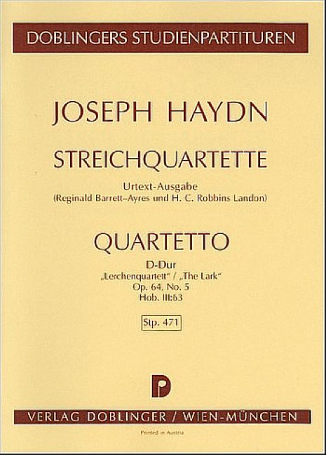 Haydn String Quartet D-Dur "The Lark" Op.64, No.5 Hob.lll:63 (Miniature Score)