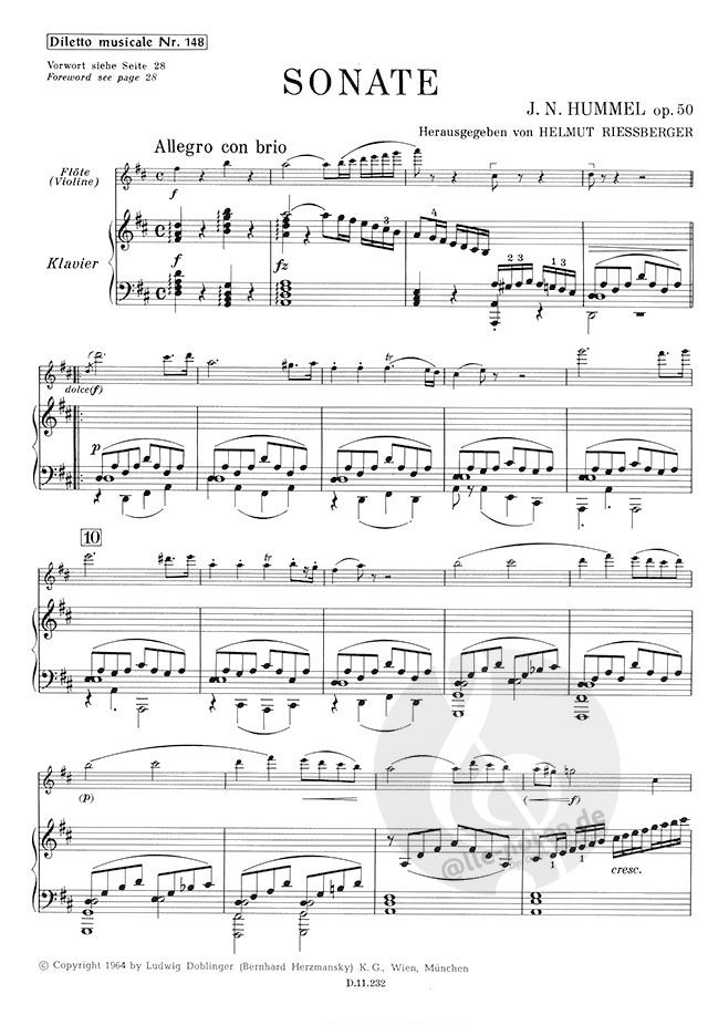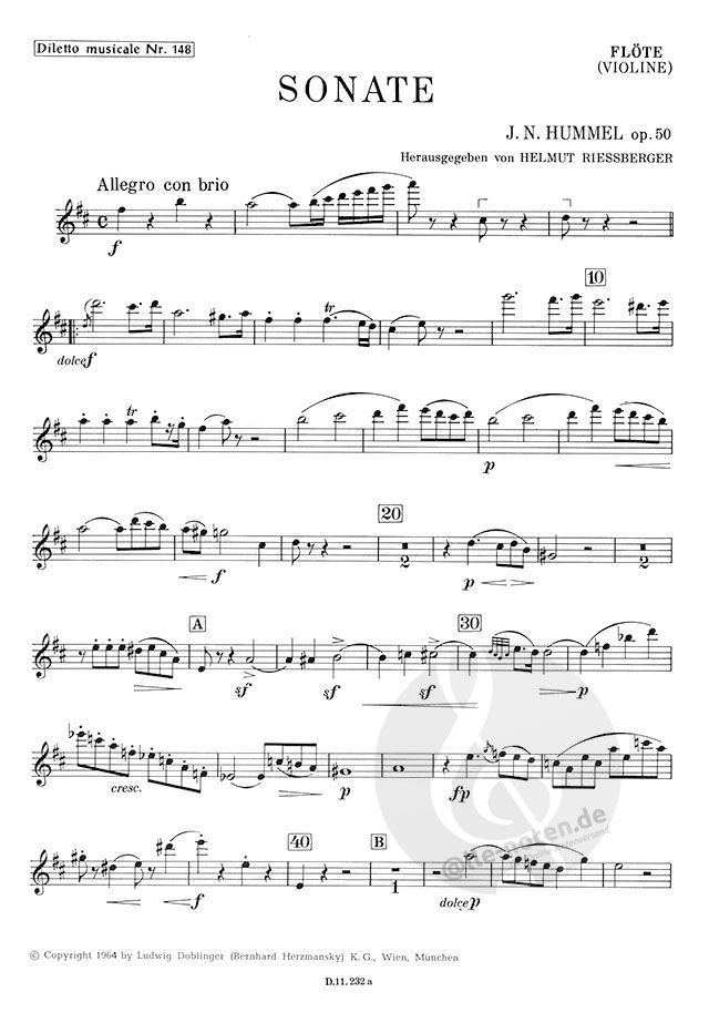요한 네포무크 훔멜 의 플루트 소나타 D장조 작품. 50 플루트와 피아노