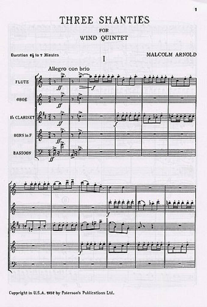 Malcolm Arnold Three Shanties Op.4 for Wind Quintet for Full score