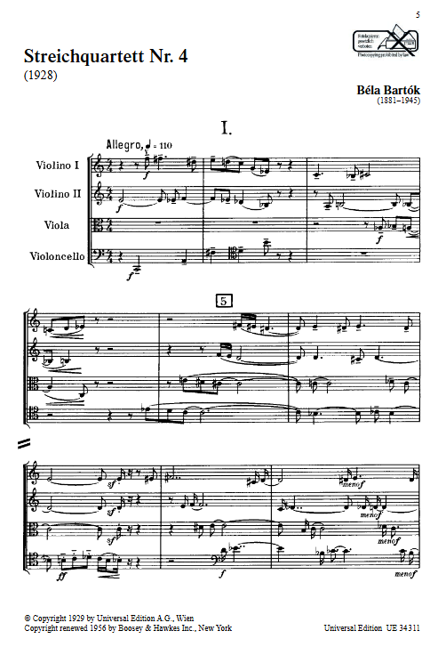 The fourth string quartet embodies that moment in Bartók's art in which the composer, surpassing the concentrated and retrospective third quartet, reaches a summit for the first time and casts his gaze over the endless landscape expanding in front of him, taking in his kingdom with his own eyes. (György Kroó)